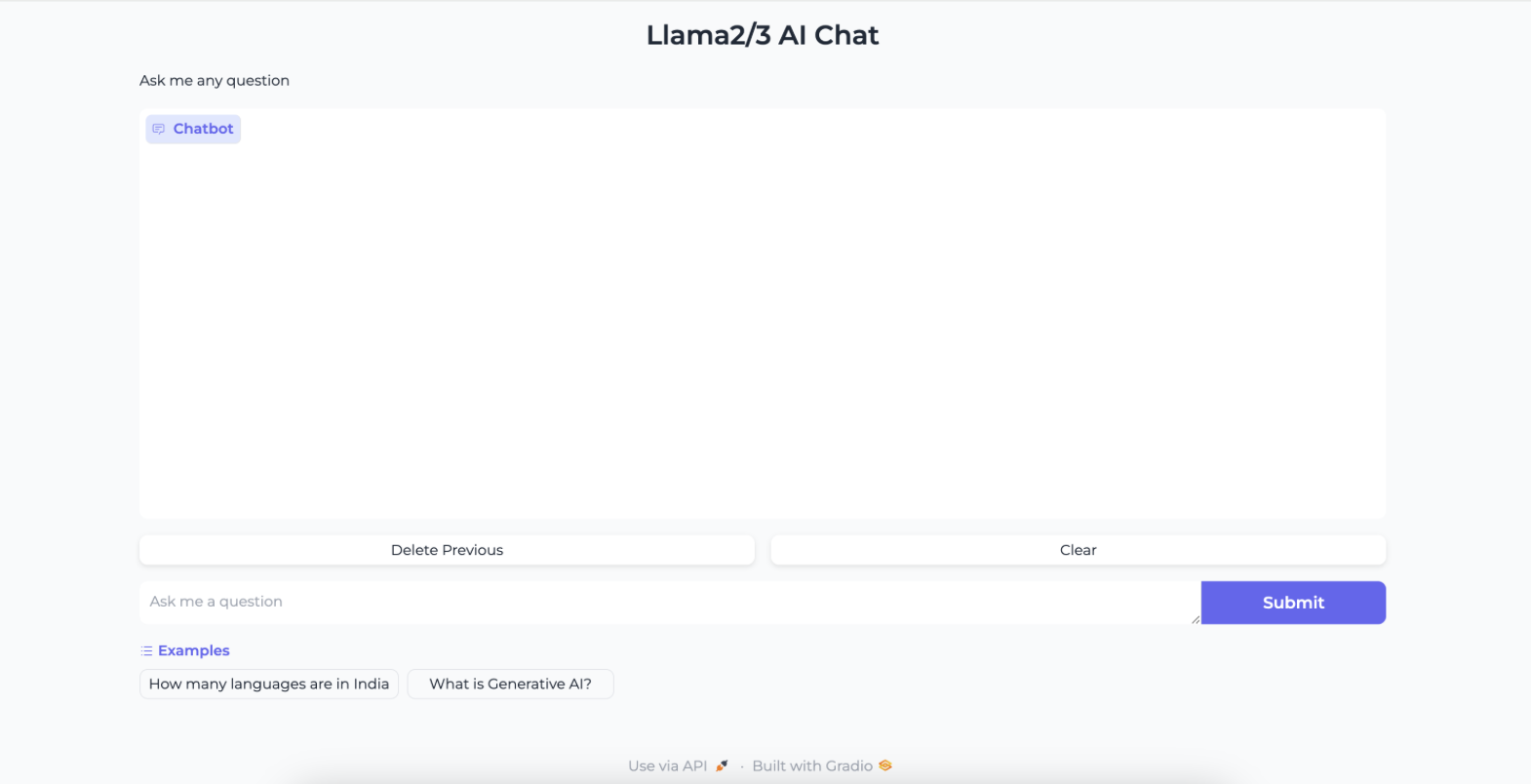 Now that our application is exposed to the outside world, let's access it by pasting the URL in your web browser. You will see the Llama2 chatbot and will be able to interact with it by asking questions.